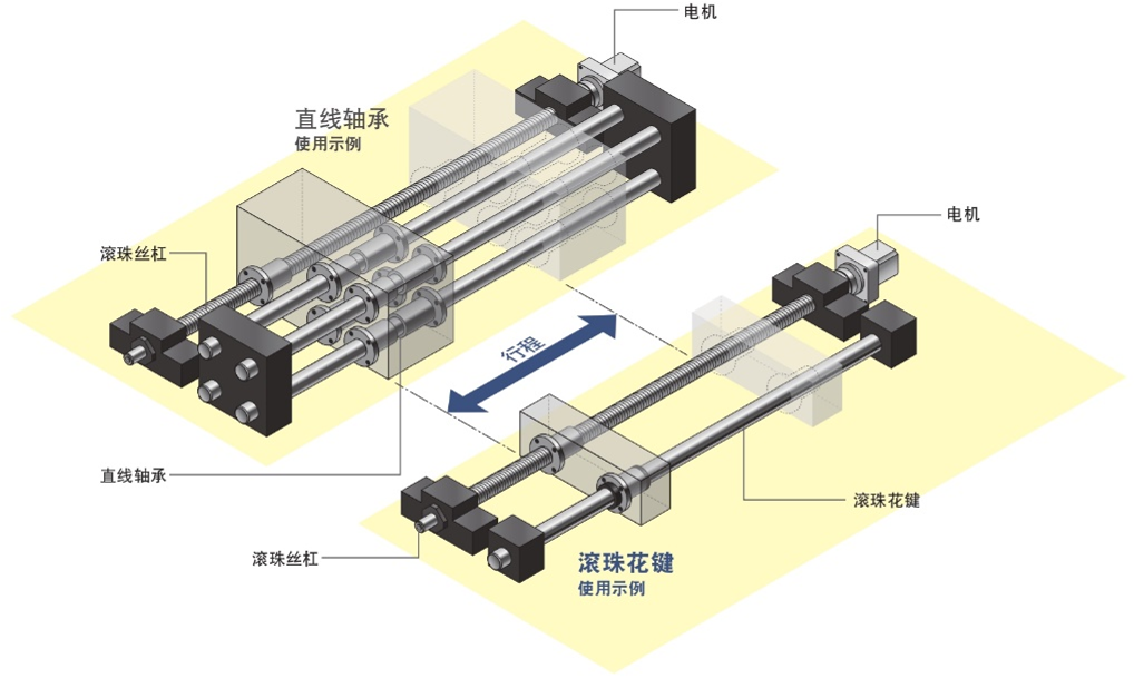 滾珠花鍵可通過單軸承受扭矩,因此與直線軸承相比,具有外圍關聯部件小、部件數量少等優勢,從而可使主要部件輕量化,降低總體成本。