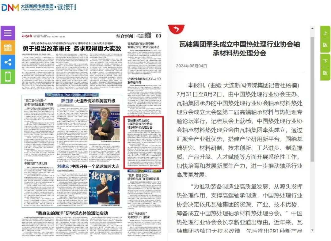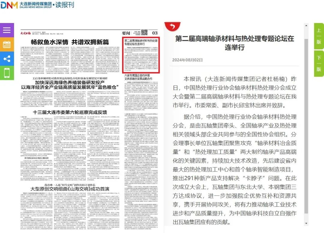 瓦軸集團(tuán)牽頭成立中國熱處理行業(yè)協(xié)會(huì)軸承材料熱處理分會(huì),將發(fā)揮國有企業(yè)產(chǎn)業(yè)支撐引領(lǐng)作用,通過匯聚全產(chǎn)業(yè)鏈優(yōu)勢(shì),搭建產(chǎn)學(xué)研用新平臺(tái),圍繞基礎(chǔ)研究、材料研制、技術(shù)創(chuàng)新、工藝進(jìn)步、制造提質(zhì)、產(chǎn)品升級(jí)、人才賦能等方面開展系統(tǒng)性工作,加快培育和發(fā)展新質(zhì)生產(chǎn)力,進(jìn)一步推動(dòng)軸承行業(yè)高質(zhì)量發(fā)展。