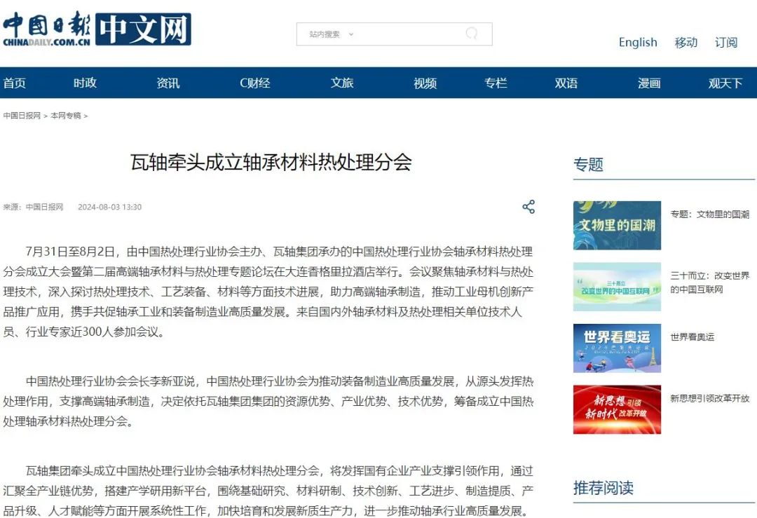 瓦軸牽頭成立軸承材料熱處理分會(huì)